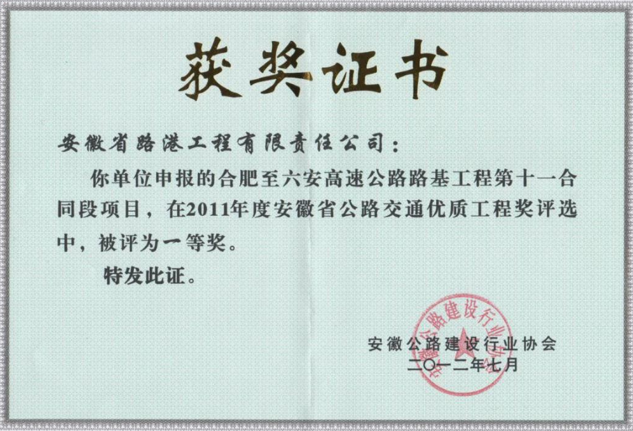 歷年榮獲的安徽省公路交通優質工程獎一等獎