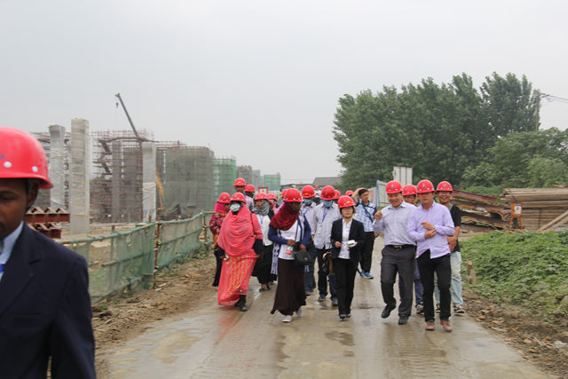 5月20日上午,坦桑尼亞聯合共和國的桑給巴爾客人在安徽建工集團工管部的陪同下,來到安徽路港合肥市郎溪路高架項目部進行觀摩。