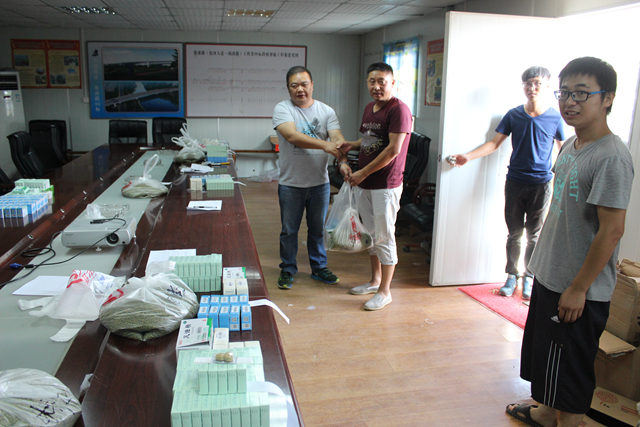 為保障高溫期間廣大員工在勞動生產過程中的身體健康、人身安全,安徽路港郎溪路高架項目部高度重視夏季員工防暑降溫工作,提前統(tǒng)一采購防暑降溫藥品,為項目部職工和一線班組人員共計650余人發(fā)放藿香正氣口服液、人丹、十滴水和風油精等防暑降溫藥品。