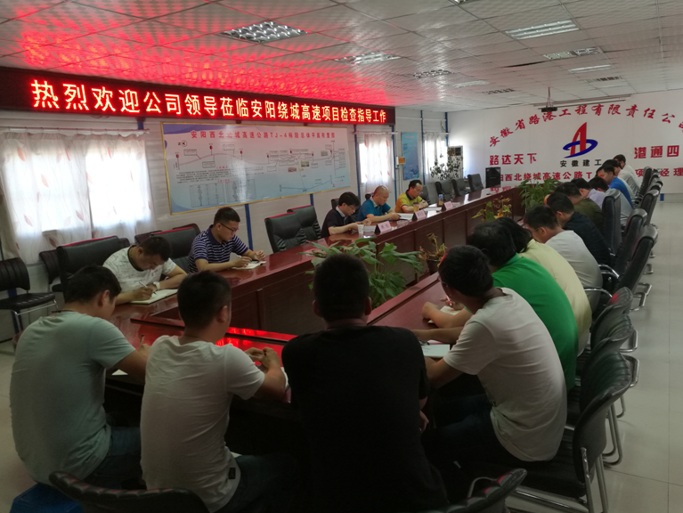 在項目部會議室,項目負責人就工程概況、施工進展、工程難點及下一步工作進行了詳細介紹。章總一行對項目部目前取得的成績予以肯定,同時對下步工作提出要求:要樹立成本意識,加強成本控制,在河南省樹立安徽路港品牌形象;要持續深入開展“師帶徒”工作,努力做好“傳幫帶”,切實打造出一支有技術、有能力、敢打敢拼的管理型、技術型隊伍,為公司發展提供人才支撐。