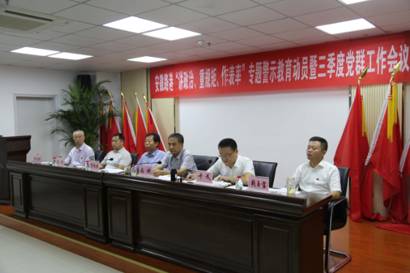 7月27日,安徽路港“講重作”專題警示教育動員暨三季度黨群工作會議在安建大廈22樓會議室召開,公司領(lǐng)導(dǎo)班子成員、機關(guān)部門副職以上人員、機關(guān)全體黨員、分子公司黨政主要負責人、在肥項目經(jīng)理和所屬各黨支部書記等共70余人參加了會議。