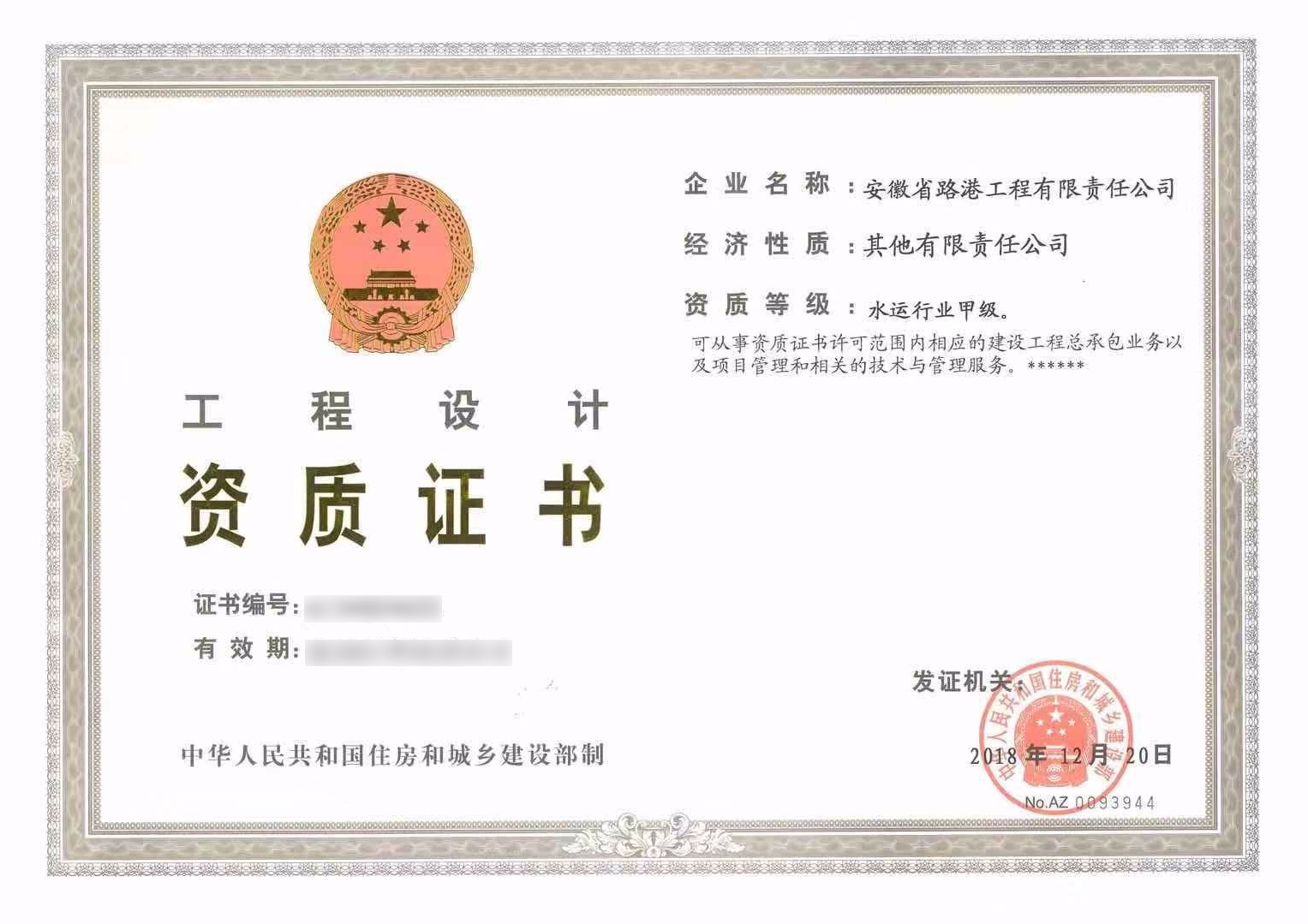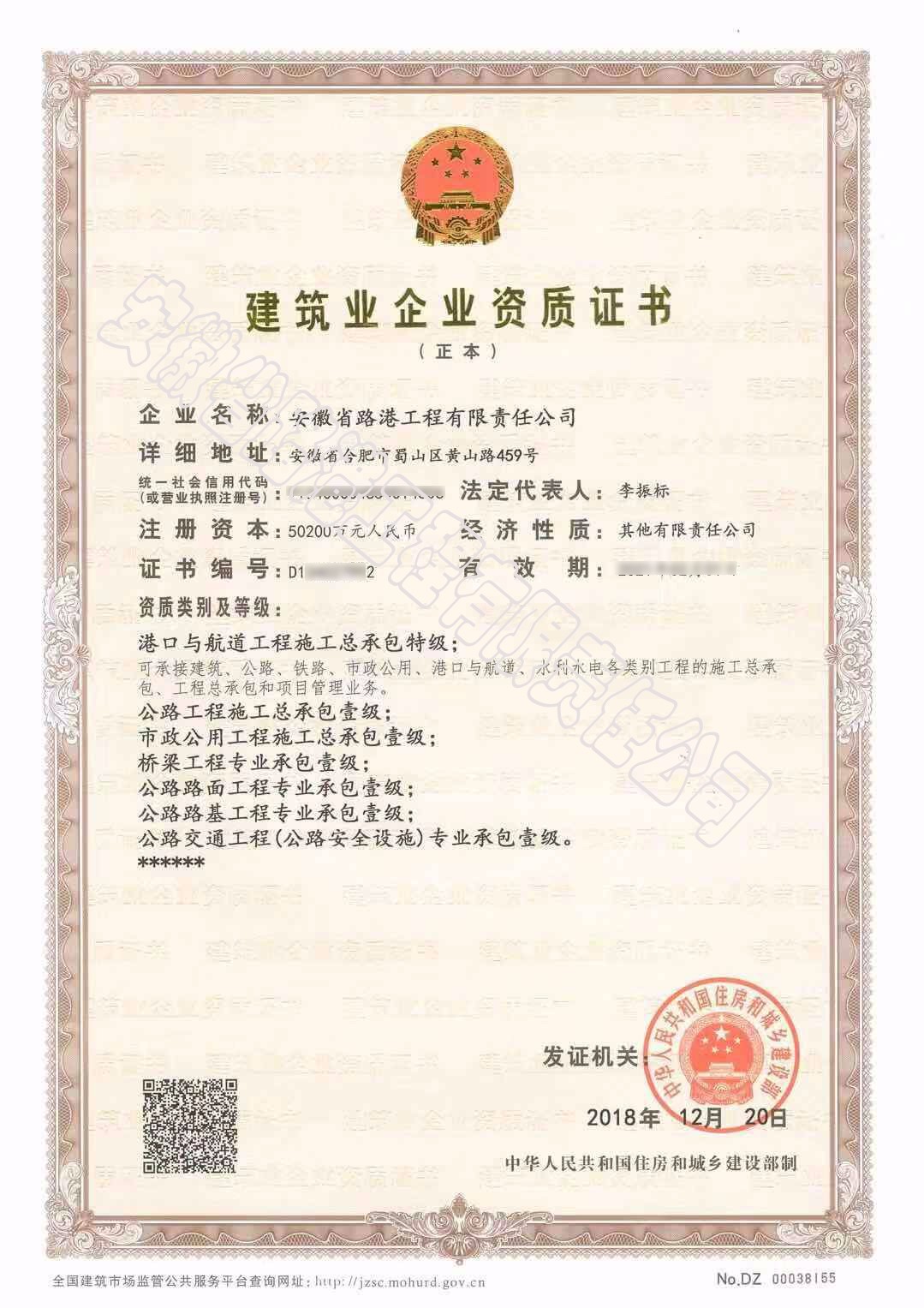 2018年12月20日,安徽省路港工程有限責(zé)任公司喜獲港口與航道施工總承包特級(jí)、水運(yùn)行業(yè)工程設(shè)計(jì)甲級(jí)資質(zhì),成為全國(guó)第十四家、全國(guó)省屬企業(yè)首家擁有港航特級(jí)資質(zhì)的企業(yè)。