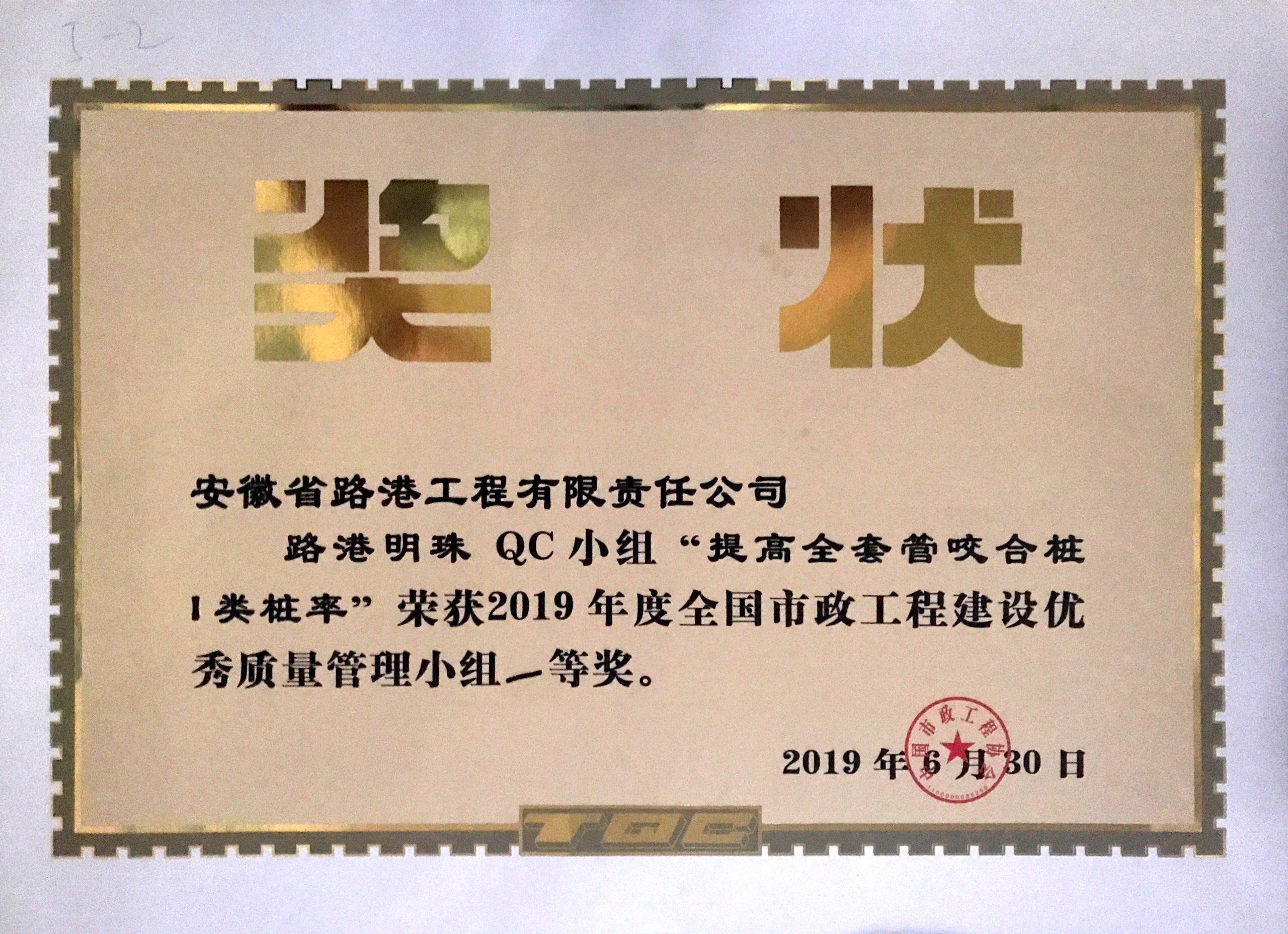 日前,由中國(guó)市政工程協(xié)會(huì)組織舉辦的2019年度全國(guó)市政工程建設(shè)優(yōu)秀QC小組成果表彰會(huì)在廈門(mén)成功召開(kāi)。會(huì)上,安徽路港明珠QC小組發(fā)布的“提高全套管咬合樁Ⅰ類(lèi)樁率”QC成果在發(fā)布會(huì)現(xiàn)場(chǎng)獲得專(zhuān)家及同行一致認(rèn)可與好評(píng),榮獲2019年度全國(guó)市政工程建設(shè)優(yōu)秀質(zhì)量管理小組一等獎(jiǎng)。