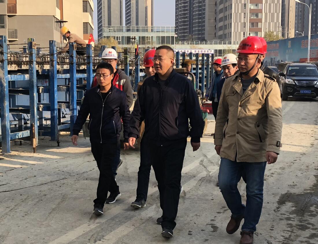鄭浩一行首先在項目部會議室聽取了項目負責人對明珠路西延項目整體建設情況的匯報,詳細了解了工程進展、安全生產、質量控制以及存在的困難。隨后,檢查組來到施工現場,看到施工現場繁忙的大干景象后,鄭浩副局長對全體員工飽滿熱情和昂揚斗志表示了稱贊,并指出在當前嚴峻的環保形勢下,一是要把安全文明施工作為當前的頭等大事來抓,二是要協調處理好進度與安全、質量的關系,三是要結合不斷變化的合肥市場特點,細化施工組織,優化資源配置。