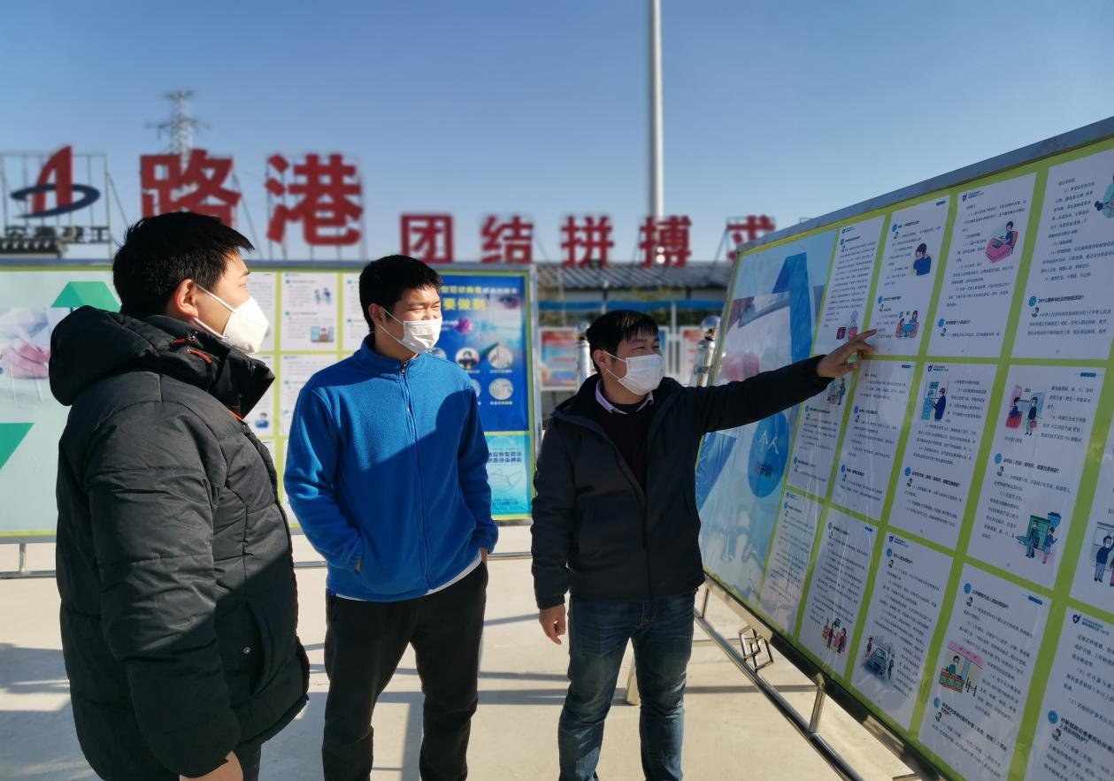 為了推進(jìn)防疫知識人人皆知、入腦入心,項(xiàng)目部在人員進(jìn)出口位置懸掛橫幅、海報(bào)、展板等防疫提示語,還通過工作群、內(nèi)部辦公網(wǎng)絡(luò)等形式宣傳防疫措施,同時對每位工作人員進(jìn)行防疫知識培訓(xùn),營造疫情防控的深厚宣傳氛圍。