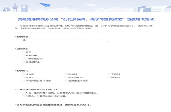 四分公司黨支部聯合工會,開展“創黨員先鋒,做學習宣貫模范”線上防疫知識答題活動,促使員工深入掌握防控知識,科學參與疫情防控。