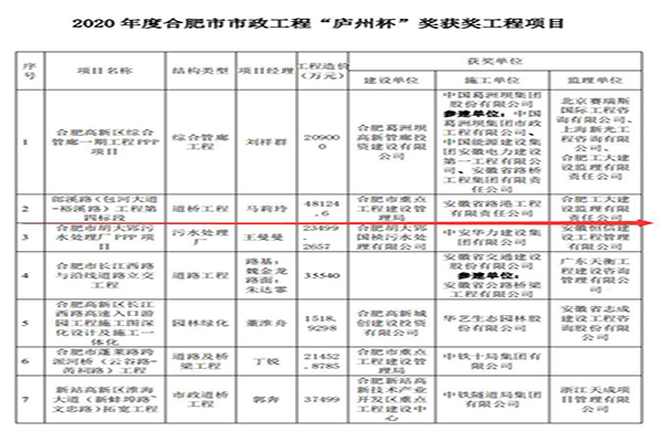 “廬州杯”獎(市優(yōu)質(zhì)工程)由合肥市市政工程協(xié)會每年組織一次評選,評選原則是好中選優(yōu),優(yōu)中選精,其工程質(zhì)量和技術(shù)水平應(yīng)達到省(市)內(nèi)領(lǐng)先水平。此次兩項目廬州杯獎的獲得,為公司市政類項目申報更高級別獎項打下了堅實基礎(chǔ)。