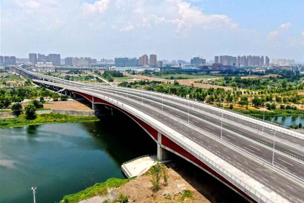 南淝河大橋上部結構采用連續梁體系波形鋼腹板預應力混凝土箱梁,為安徽省首例波形鋼腹板預應力混凝土連續箱梁特大橋。本項目運用的新材料波形鋼腹板采用Q355NHD等級耐候鋼材,用鋼量3000噸,為全國第一。主橋單跨徑153m,省內同類型橋梁跨度第一。