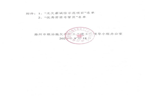 9月28日,蘇滁現(xiàn)代產(chǎn)業(yè)園滁州大橋項(xiàng)目獲滁州市根治拖欠農(nóng)民工工資工作領(lǐng)導(dǎo)小組辦公室頒發(fā)的滁州地區(qū)施工企業(yè)“無(wú)欠薪誠(chéng)信示范項(xiàng)目”稱(chēng)號(hào)。項(xiàng)目部勞務(wù)專(zhuān)管員程雷榮獲“優(yōu)秀勞資專(zhuān)管員”稱(chēng)號(hào),同時(shí)公司也獲得一年內(nèi)在滁州市承接項(xiàng)目享受農(nóng)民工工資保障金減免優(yōu)惠政策。