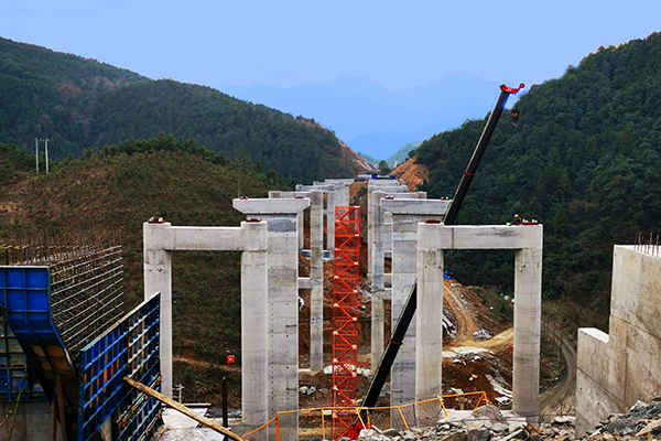 截至目前,項目主線橋梁下部結構完成97%,路基土石方完成86%,互通區橋梁完成95%,隧道工程完成98%。近日,項目部正在全力沖刺譚家橋樞紐工程建設。該工程位于蕪黃高速項目終點處,與合銅黃高速相接,是整個項目的重難點工程,設計采用十字形樞紐互通,涉合銅黃高速改造約2公里,建成后將加強蕪黃高速、合銅黃高速、S103省道與譚家橋鎮的聯系。項目部承接的附屬小區房建工程——譚家橋收費站也于10月16日開工,收費站基礎形式為獨立基礎,主體結構形式為框架結構,屋頂為徽派馬頭墻建筑風格。同時施工的還有五道河大橋、一道河大橋施工建設,這兩座橋共有17排橋墩,墩身高度在33.2-44.2米之間。