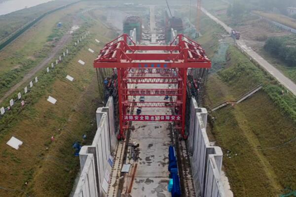 進入6月后,汛期、酷暑接踵而至,給項目施工生產帶來巨大影響。項目部領導班子化被動為主動,通過優化降排水方案、調整作息時間加快施工進度。為使建設進度迅速回歸正常軌道,全體參建人員日夜兼程,搶晴天、戰雨天,以完成節點目標為榮、完不成施工任務為恥,緊盯任務目標,各工序交叉作業、無縫銜接,各工作面多點開花、齊頭并進。7月29日,上閘首混凝土正式封頂;8月6日,閘室墻標準段施工結束;8月14日,下閘首輸水廊道澆筑完成;8月28日,下游錨地土地交付使用,次日完成清表工作;9月25日,下閘首左側頂板完成澆筑;10月15日,上、下閘首全面封頂;10月29日,首片箱梁成功架設……靈璧船閘建設以來,每個節點、每次攻關、每次創新,都浸透著全體建設者的心血與汗水!