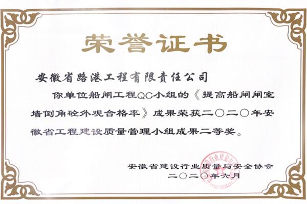 質量管控工作從源頭入手,項目部成立“創新QC”小組,《提高船閘閘室墻倒角砼外觀合格率》獲得安徽省建設行業質量與安全協會“QC”課題發布二等獎。為加強技術創新、不斷優化工藝,項目部應用路港公司第三代閘室墻移動模機設備,達到節省人力、物力,工程實體“內飾外美”的效果。同時,由安徽省港航集團與路港公司聯合主辦的“內河船閘工程智能建造關鍵裝備研發與應用專家研討會”順利召開,也對內河船閘工程施工過程中的質量控制、科技創新及成果提煉具有深遠意義,進一步推動了內河船閘工程智能建造領域的技術進步。