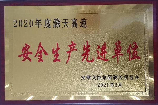 3月11日,租賃分公司滁天CT-YZ標項目部榮獲“2020年度滁天高速安全生產先進單位”、“2020年度滁天高速安全生產先進集體” 榮譽稱號,項目部職工獲“2020年度滁天高速安全生產先進個人”榮譽稱號。