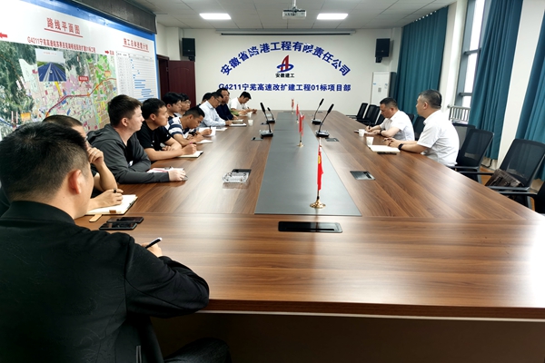 在寧蕪01標項目,錢葉琳聽取項目進展情況的匯報,并宣布馬鞍山項目聯合黨支部成立。隨后就支部建設、項目管理、地方經營等工作與項目部人員進行深入交流。錢葉琳要求:一是要加強支部建設,發揮黨建引領作用,黨建融合業務發展;二是加強成本管控,挖掘碎石利用等利潤點,做好項目全盤策劃;三是場站建設高標準,利用項目建設帶動地方經營;四是強化人才隊伍建設,鼓勵青年職工立足崗位,加強學習,成長成才。