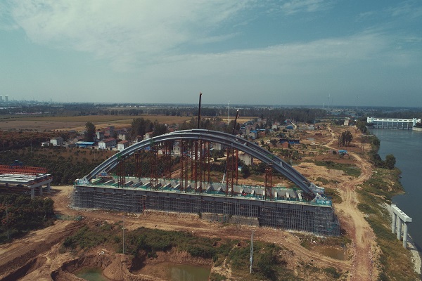 9月23日,臨渙船閘橋梁改建施工項目鋼管拱正式合龍。