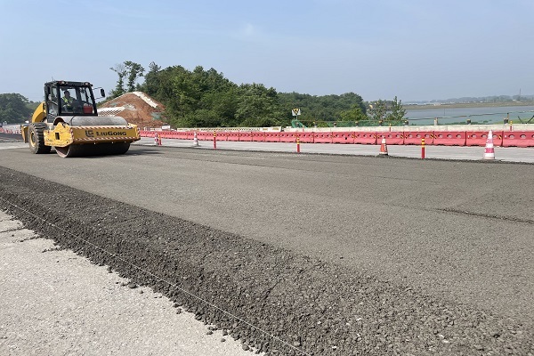 截至4月底,青通河大橋項目已按業主要求如期完成左幅導改通車。目前,水穩攤鋪正在緊張有序地推進,進入路面大干搶干、沖刺橋梁懸澆的施工階段。