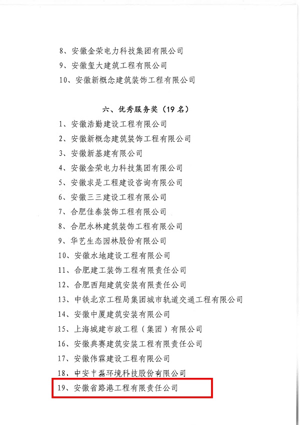 喜訊!安徽路港榮獲合肥高新區(qū)優(yōu)秀建筑企業(yè)表彰