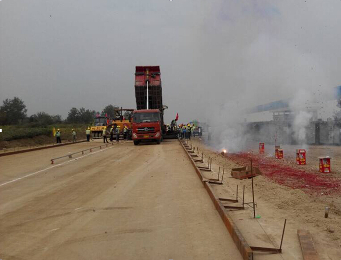 9月15日上午9點,隨著一陣清脆的爆竹聲和禮花轟鳴聲,S312天釜路改建II標項目部的水穩試驗段正式拉開了攤鋪序幕。標志著天釜路即將全面進入路面基層施工新階段。