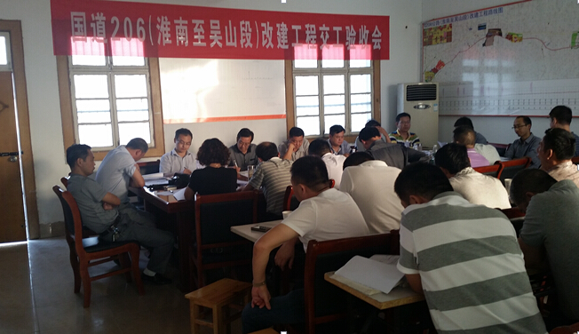 9月16日,合肥市交通運輸局、市公路局、市質監站、縣交通運輸局、安徽省交通規劃設計研究總院股份有限公司等相關專家和領導來到G206(淮南至吳山段)改建工程項目辦,對先期完成并具備交工條件的路基路面01標、05標、交通工程01標、02標進行交工驗收。