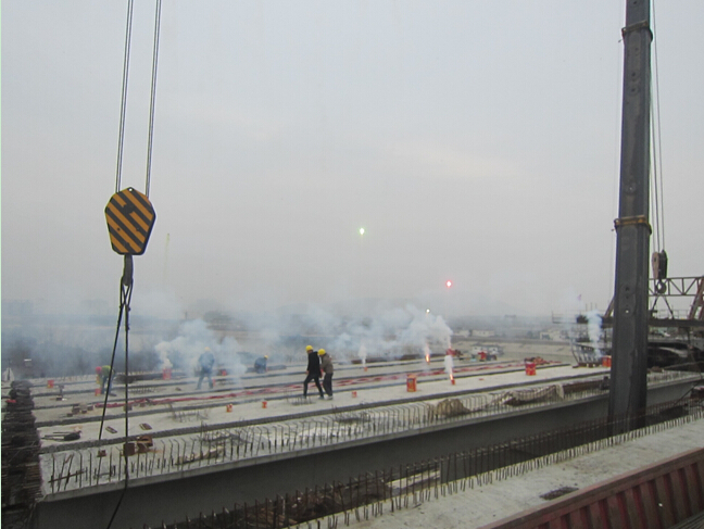 經過我標段積極組織,合理安排,參建各方相互配合,克服了運輸距離遠、道路交通條件復雜、進場道路阻礙等重重困難,經過5個月的努力,將南岸引橋276片預制箱梁全部架設完畢。最后一片梁板的安裝意味著裕溪河特大橋的引橋結構施工順利完成,同時也為確保項目總體目標的實現奠定堅實基礎。