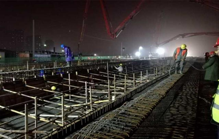 正式澆筑之前,架子工和木工分別對支架和模板進行全面檢查,清除個別頂托脫空現象,加固松動的腹板墊塊,清理底板上的雜物,及時排除各種隱患。本次現澆投入架子工20人、木工60人、鋼筋工45人、混凝土工40人,混凝土泵車2臺、混凝土運輸車20臺、振搗棒12臺,技術人員全程監督指導,對混凝土及施工質量進行全面控制。