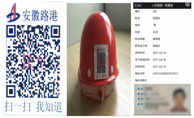 近日,在南坪船閘項目部駐地和施工現場,現場技術員和班組工人拿著手機,對著識別卡和展板上的二維碼掃一掃,“