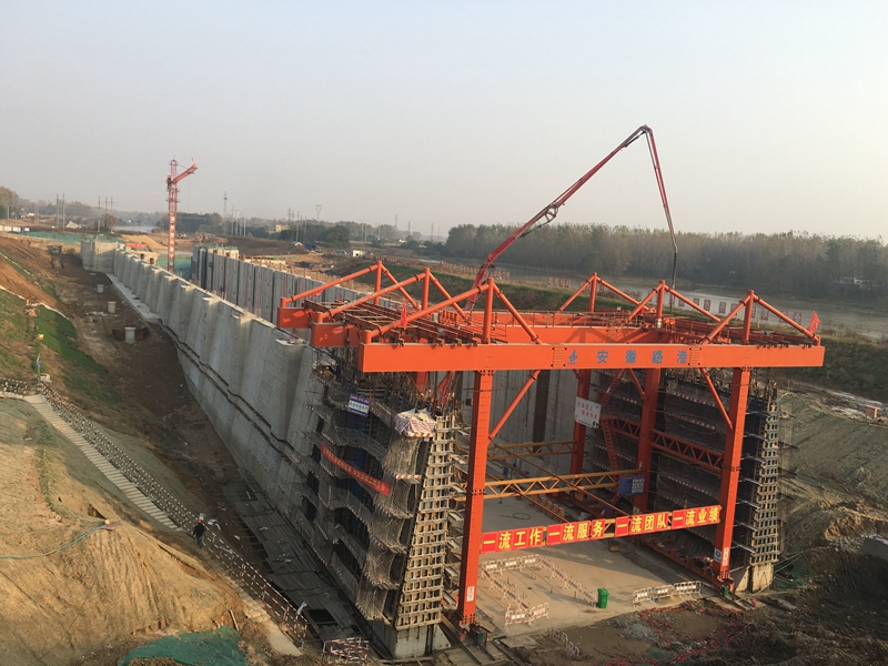 南坪船閘閘室墻順利完成混凝土澆筑