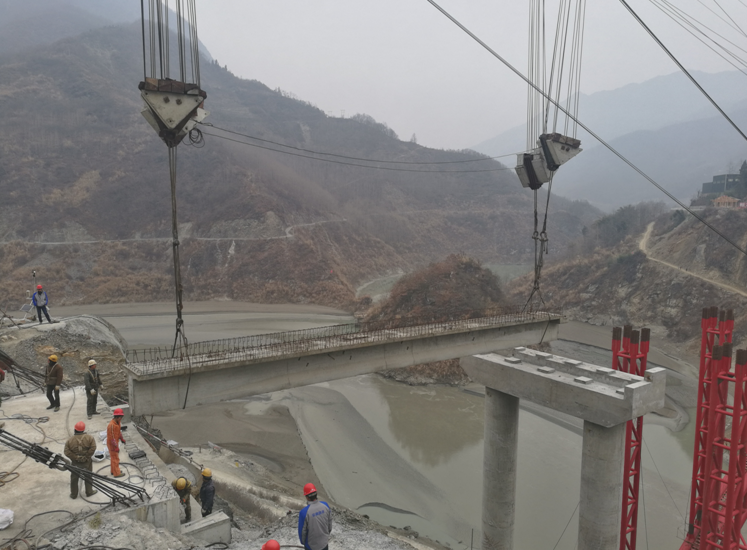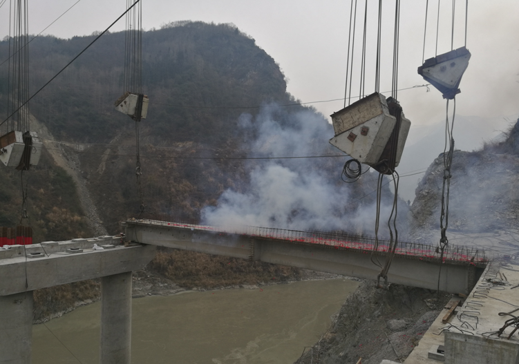 2月7號,主線唐家山特大橋首跨20mT梁在纜索吊平穩(wěn),準確的牽引下,穩(wěn)穩(wěn)落在支座上,標志著北川溜索改橋項目取得又一階段性的成功。