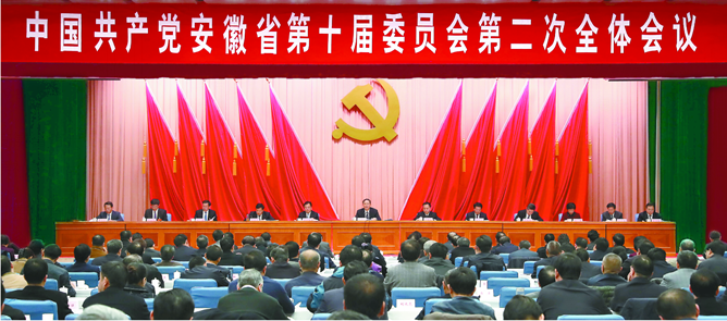 中國共產黨安徽省第十屆委員會第二次全體會議于11月28日至29日上午在合肥舉行。全會由省委常委會主持。省委書記李錦斌發表講話。省委副書記、代省長李國英,省委副書記信長星,省委委員、省委候補委員出席會議。