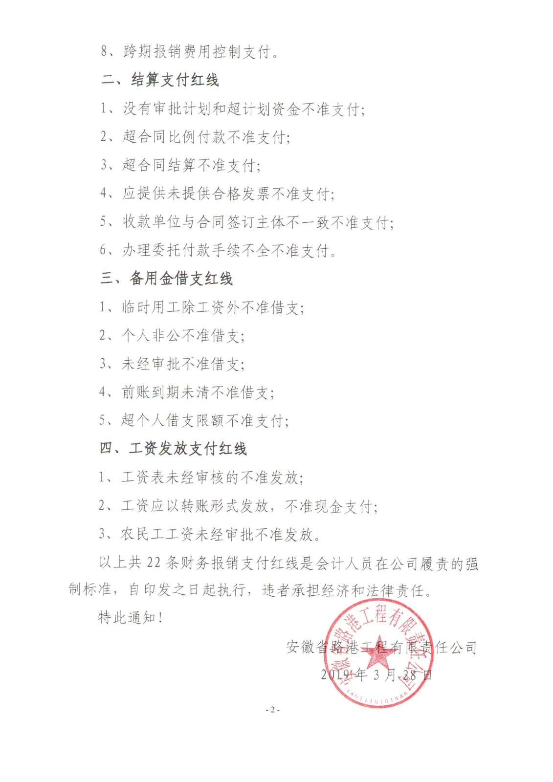 關于印發《安徽路港公司財務報銷支付紅線》的通知