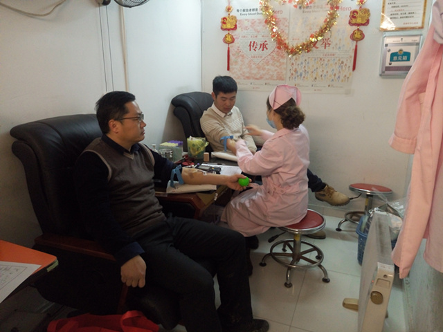 2月22日,蕪湖中山橋項目黨支部與團支部聯合組織開展無償獻血活動。