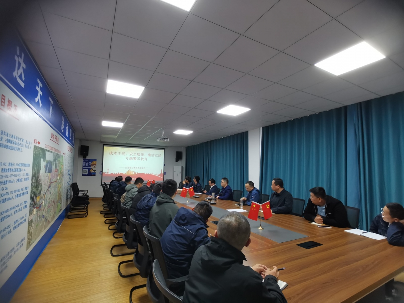會(huì)上張?chǎng)螘?shū)記還帶領(lǐng)項(xiàng)目部人員學(xué)習(xí)了《成本主線、安全底線、廉潔紅線專(zhuān)題警示教育》。