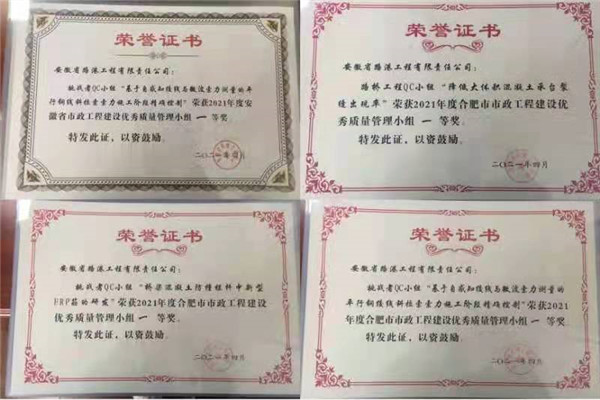 項目先后獲得工法2項,發明2項,專利4項,發表SCI論文2篇,核心論文10篇,省級QC成果一等獎3項、二等獎4項,市級QC成果一等獎3項、二等獎4項、“智能CFRP筋替換矮塔斜拉橋斜拉索”的微創新1項。當前項目正在籌劃申報交通部平安工地、集團安全文明標準化示范工地、潁州杯、黃山杯等獎項。