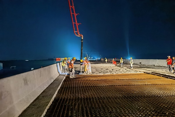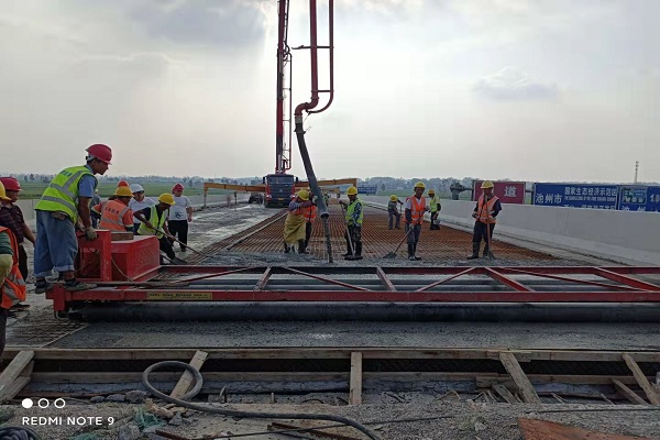 銅陵市G236青通河大橋項目部中秋期間正在進行橋梁的橋面鋪裝和防撞護欄施工,路基的路床施工。截至目前,左幅橋梁已完成基礎、下部構造及上部結構施工,路基已完成挖方13.43萬方,填方14.11萬方,清淤1.9萬方,PHC管樁3192m。