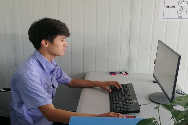 測量員程一龍2001年出生,是項目部年紀最小的員工。2020年10月,他進入項目實習,一年來,他跟著師傅先從測量開始學,除了主動向部門同事請教,他還堅持養成復測的好習慣。程一龍說:“項目戰線長,每天從早晨7點到晚上11點,都要在工地上扛著測量儀跑,真的挺辛苦的,別看現在曬得黑,我以前很白的。”談起對單位的感受,他說:“很感謝單位和同事,是單位給了我平臺,讓我證明自己的價值,是同事給予我很多幫助,良好的工作氛圍,讓我覺得工作并不像許多人說的那么辛苦,單位同樣能讓我感受到家的溫暖。”