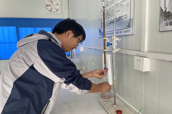 試驗員程濤2020年進入公司,項目前期,試驗室只有主任和他兩個人,每天需要檢測的施工點很多,取完原材料后,他立馬進行實驗,并及時整理出資料數據。樁基施工階段需要多次調試混凝土的配合比,加班至深夜是常態,程濤說:“我是跨專業從事試驗員工作,畢業后,通過學習,考取了道路和橋隧檢測師證書,但我實戰經驗不足,在主任手把手的指導下,現在已經能獨立完成實驗操作。我認為只要循序漸進,一步一個腳印做好工作,就是為單位做貢獻,這就是我的單位觀。”