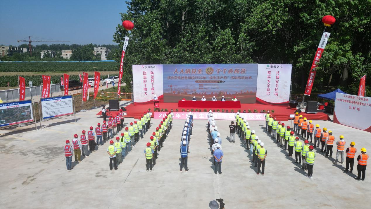 為認真貫徹項目公司安全生產要求,大力推進項目各項安全生產工作,增強全體職工的安全意識,徐淮阜亳州段路基03標項目部根據活動方案部署,圍繞今年“人人講安全,個個會應急”的安全月主題,6月6日上午9:30于渦河特大橋施工現場成功舉行2023年“安全生產月”啟動儀式。亳淮項目辦主任邵虎、渦陽縣高速公路建設指揮部主任于峰、縣交通運輸局副局長龐鑫、路橋分公司經理陳瑞以及本項目各參建單位代表出席本次活動。
