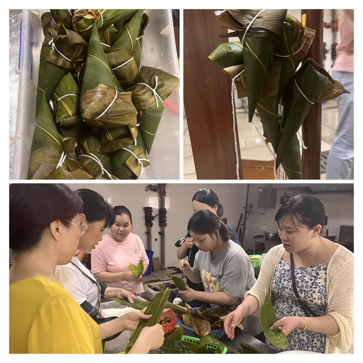活動還安排了包粽子環(huán)節(jié),食堂早早準備好了糯米、粽葉、蜜棗等食材,大家踴躍參與,圍在一起包粽子,折粽葉、填糯米、壓緊實、封口、扎線,巧手翻飛,一只只粽子瞬間成型,代表了大家對傳統(tǒng)節(jié)日的熱情與向往。