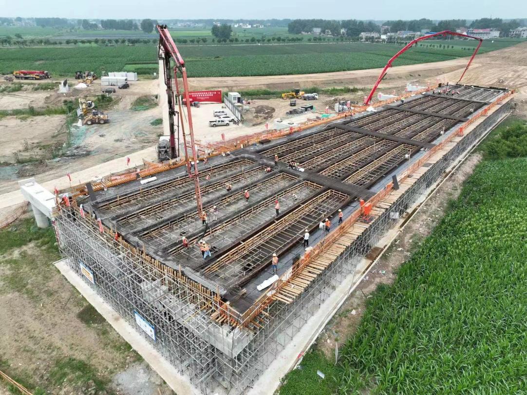 7月26日上午六時十八分,合周高速潁臨段路基07標首聯(lián)現(xiàn)澆箱梁在兩臺泵車隆隆的作業(yè)聲中順利開始澆筑,較計劃工期提前了一周。