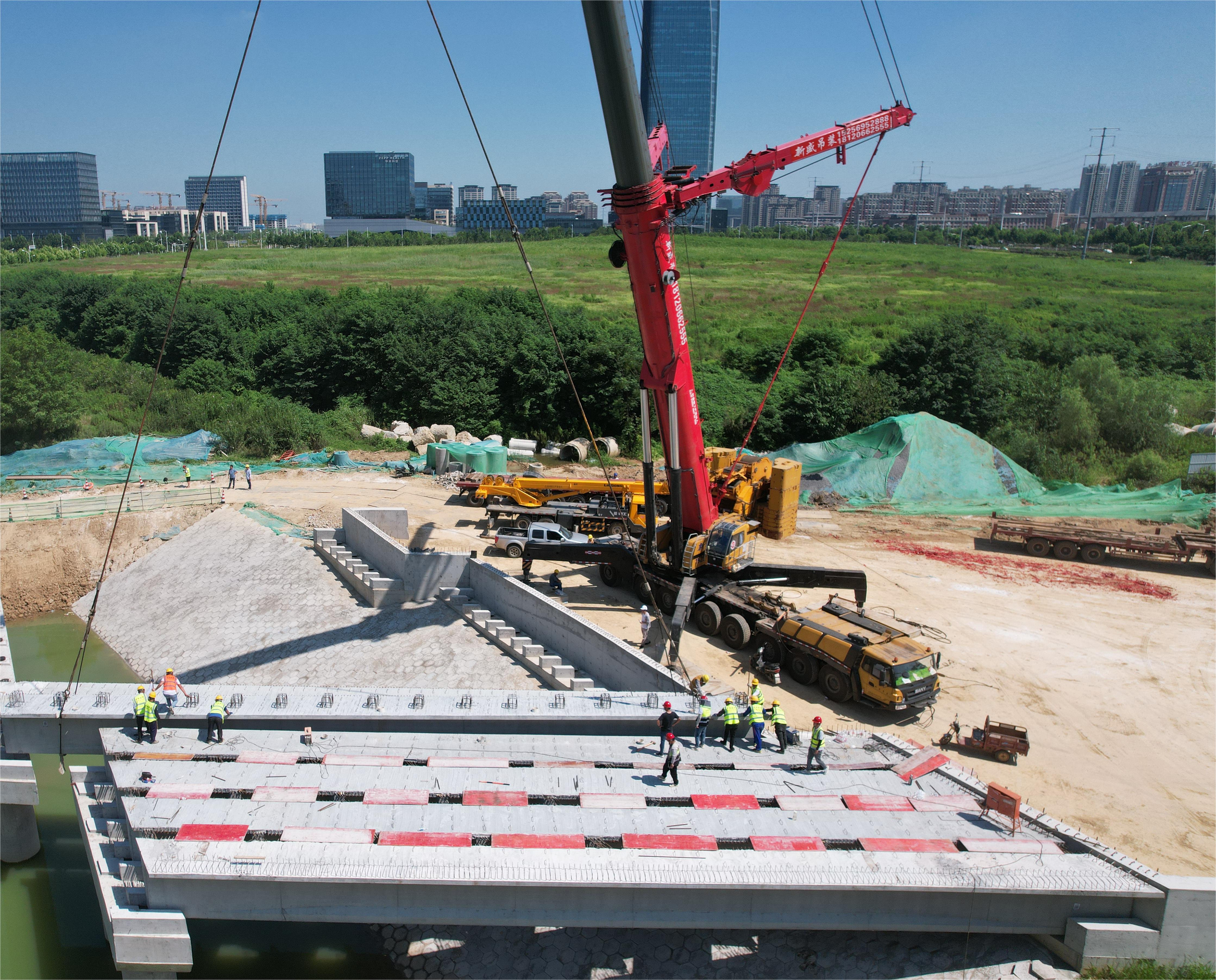 8月3日上午6:00,高新第四批市政項目合肥高新區燕子河路(雞鳴山路~方興大道)道路工程首片T梁開始架設。