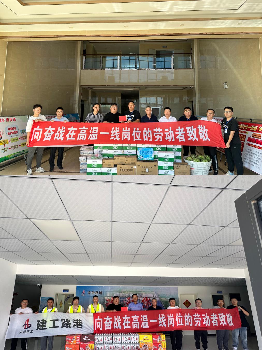 自七月入伏以來連續高溫,為切實做好夏季防暑降溫工作,保障全體職工健康權益,路橋分公司黨支部書記許玉勇、工會副主席劉愛曦帶隊,分別到在建的9個項目及拌合站開展夏日“送清涼”慰問活動,為堅守一線施工的人員送去了防暑降溫物品。