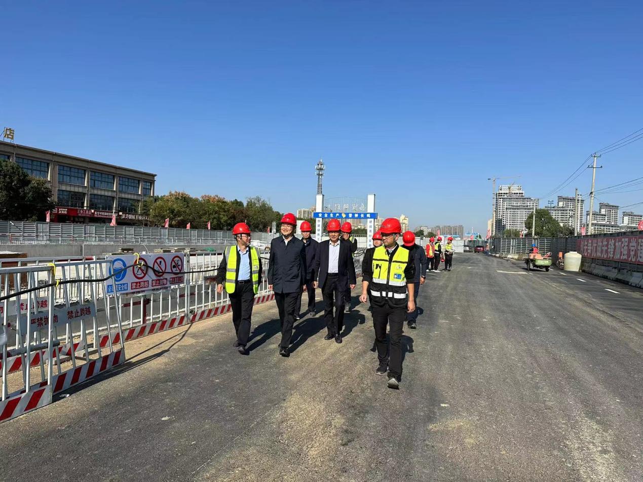 近日,公司黨委副書記、總經理、董事李建成一行到金寨南路02標調研指導工作,總經理助理、工程管理中心(安全管理部)主任鄭國新,市政分公司總經理邢磊參與調研。