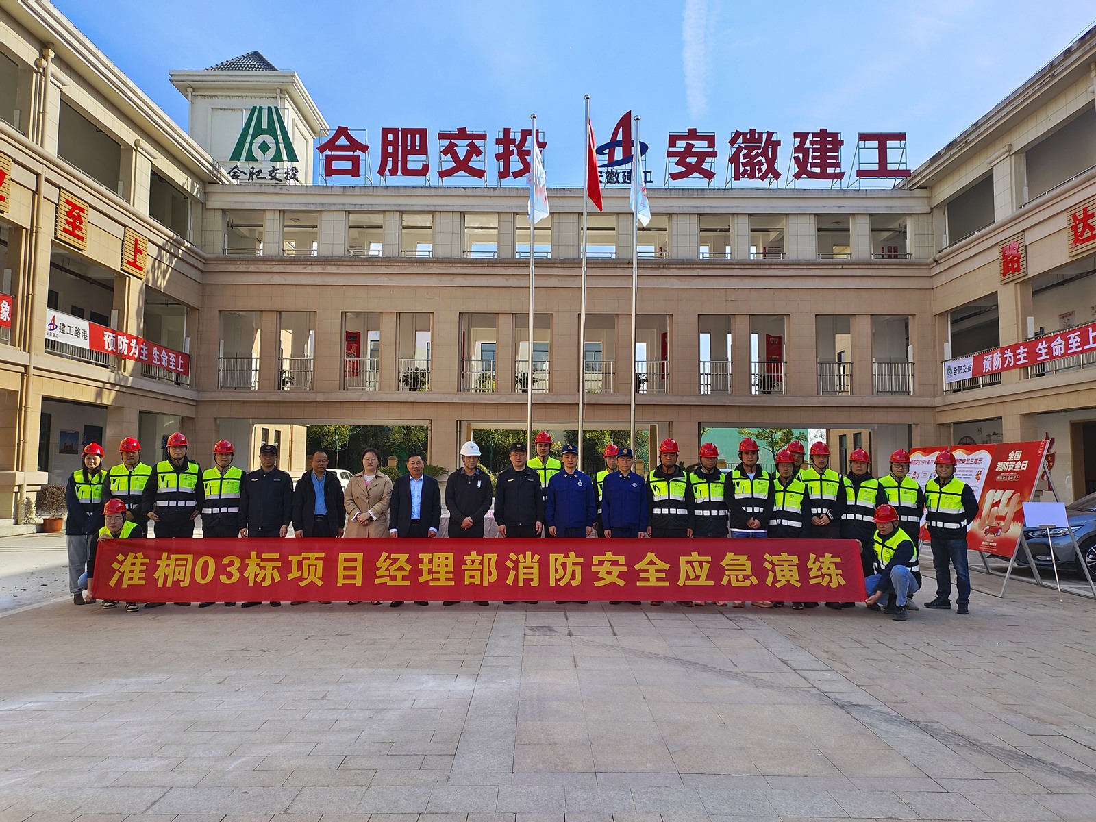 11月22日,淮桐高速3標段項目組織開展了消防安全應急救援演練活動。本次活動邀請了項目駐地辦、花崗鎮規劃站、消防工作站及救援站、社區物業單位人員到場指導。