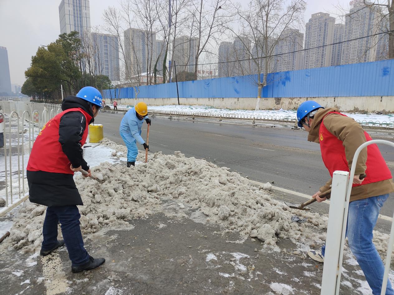 軌道交通7號(hào)線項(xiàng)目組織員工清理路面積雪,防止結(jié)冰造成道路安全隱患,保障當(dāng)?shù)鼐用竦恼3鲂小?/p>