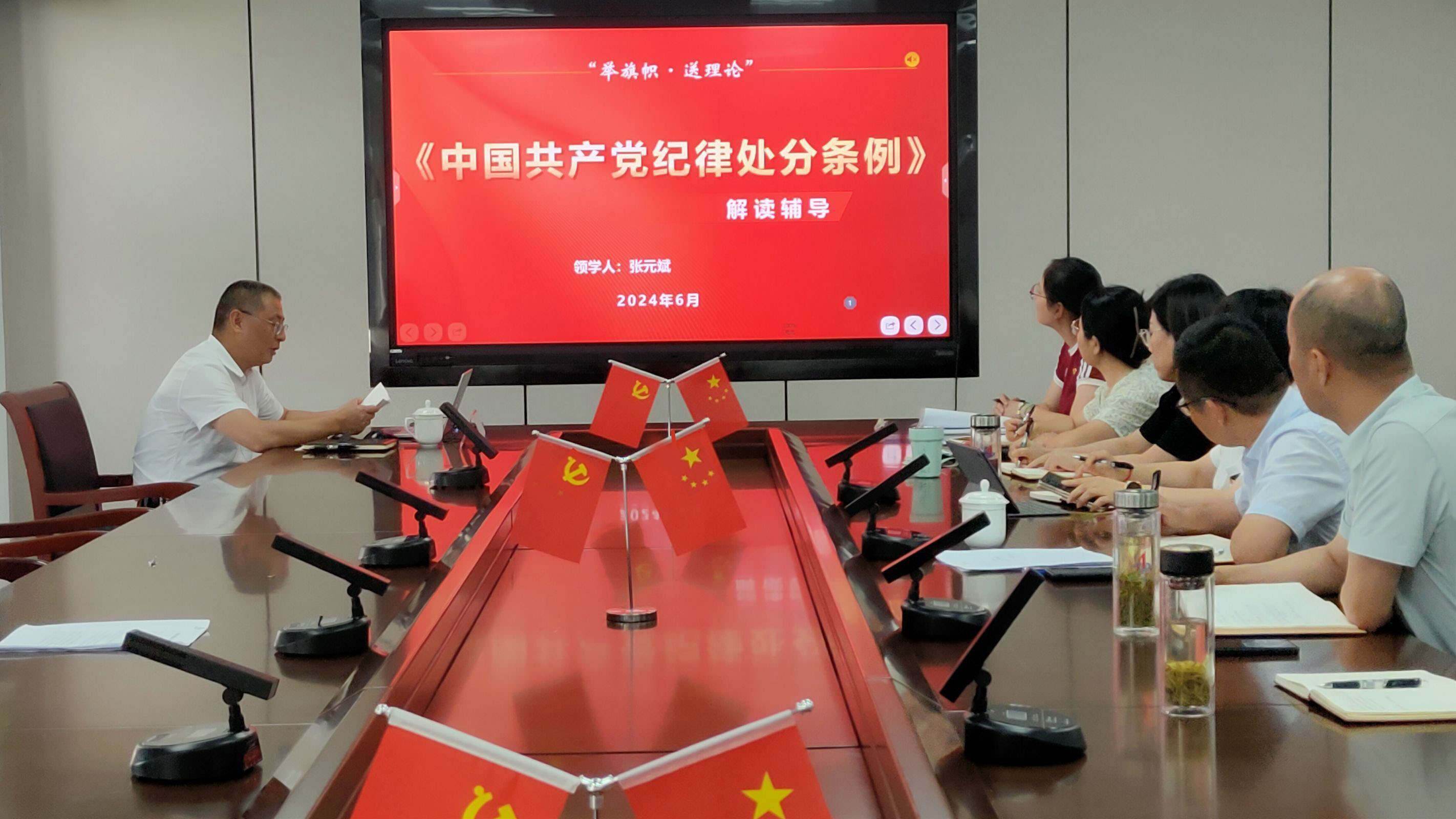 6月11日,公司財務總監張元斌赴新材料公司以《中國共產黨紀律處分條例解讀輔導》為題講授黨紀學習教育專題黨課,新材料公司全體黨員參加。
