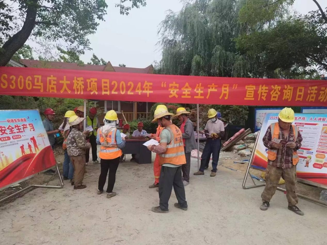 S306馬店大橋改建項(xiàng)目在項(xiàng)目現(xiàn)場設(shè)置定點(diǎn)咨詢臺,懸掛宣傳條幅,擺放安全生產(chǎn)月、安全知識宣傳展板,發(fā)放安全宣傳資料,并結(jié)合近期各地發(fā)生的重大安全事故案例,耐心講解安全生產(chǎn)的重要性,以及提醒日常工作、生活中如何做好安全防范措施,提升全員安全意識和安全技能,筑牢安全防線。