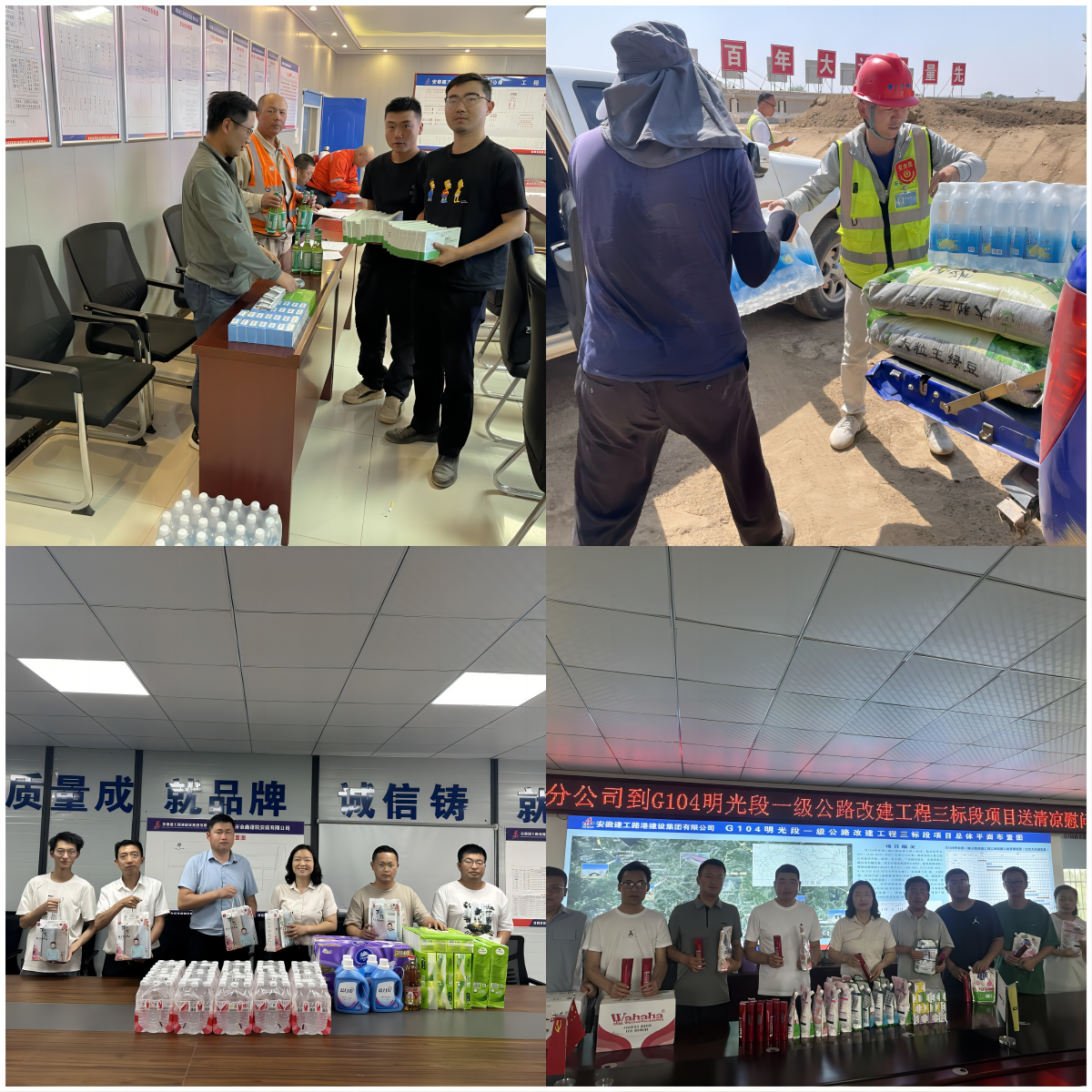 為切實維護項目職工身心健康,防控高溫中暑等事故發生,自6月中旬到7月上旬,路橋分公司到各項目開展“情系第一線 防暑保安康”送清涼慰問活動,向一線職工送祝福、送慰問、暖人心、鼓干勁。