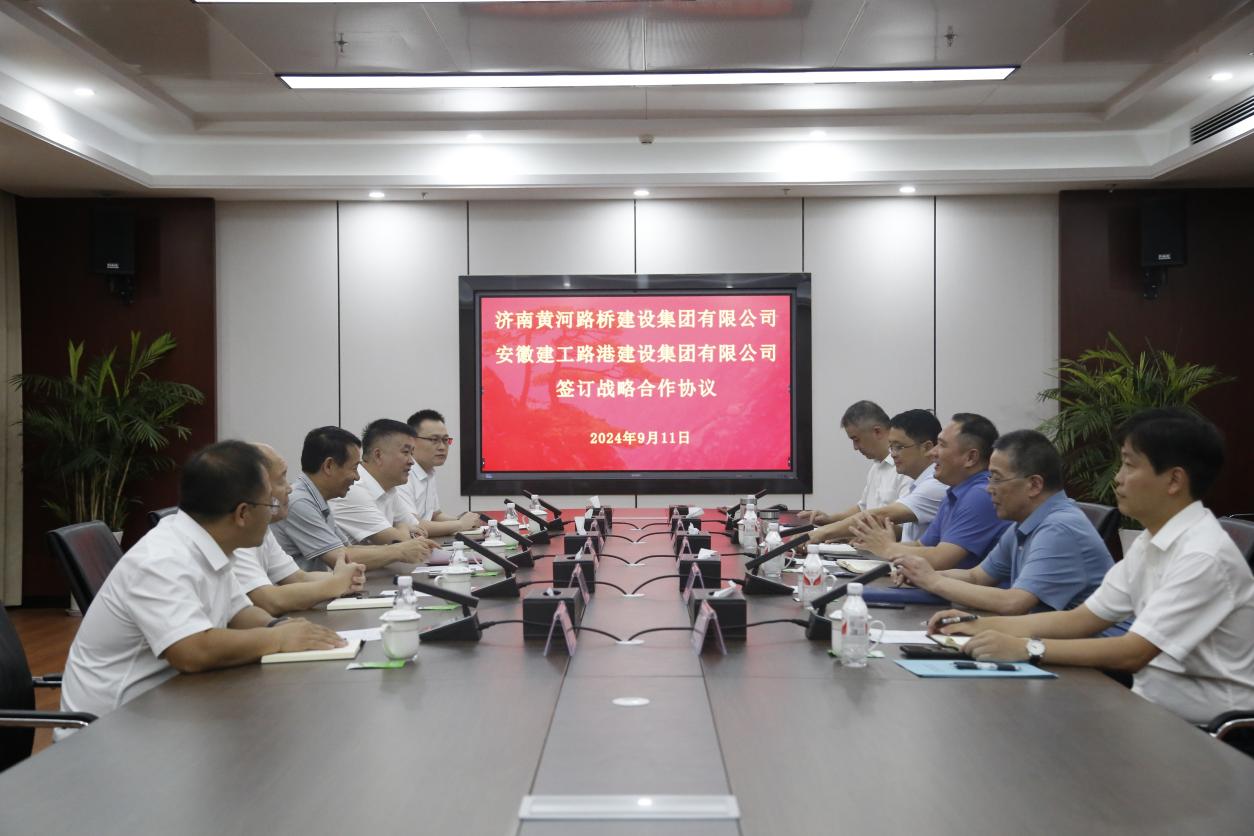 9月11日下午,安徽建工路港建設(shè)集團有限公司與濟南黃河路橋建設(shè)集團有限公司簽訂戰(zhàn)略合作協(xié)議。公司黨委書記、董事長錢葉琳,濟南黃河路橋建設(shè)集團有限公司黨委書記、董事長張玉平出席簽約儀式。