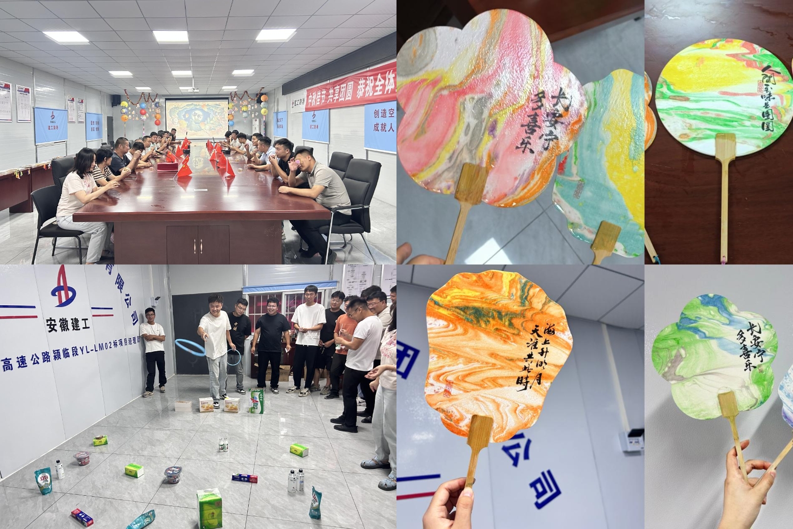 合周高速路面02標(biāo)項(xiàng)目在節(jié)日前開(kāi)展了做月餅、做漆扇、趣味游戲等“迎中秋”慶祝活動(dòng),大家歡聲笑語(yǔ),其樂(lè)融融。