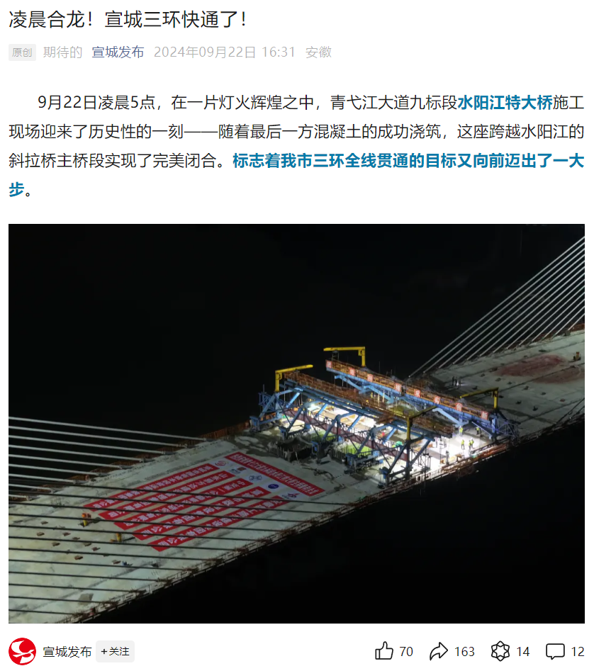 宣城發(fā)布:凌晨合龍!宣城三環(huán)快通了!